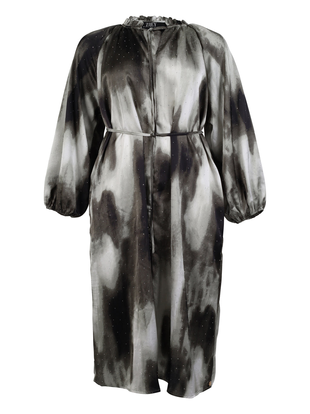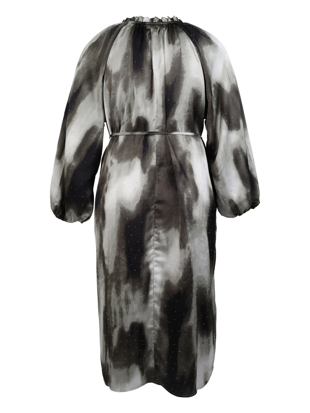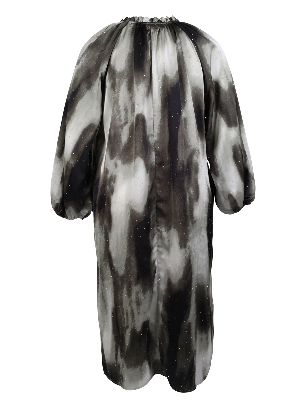 EDIE Dress er en feminin kjole med små, raffinerede detaljer. Den kan bindes ved halsen, hvilket giver mulighed for at ændre udtrykket, og similisten langs udskæringen giver et subtilt glimt.Det lette materiale falder flot og gør kjolen behagelig at have på – både til hverdag og til fest.- Plus size kjole i str. 38–56- Bindebånd ved halsen- Små similisten som diskret pynt- Let og komfortabel kvalitet