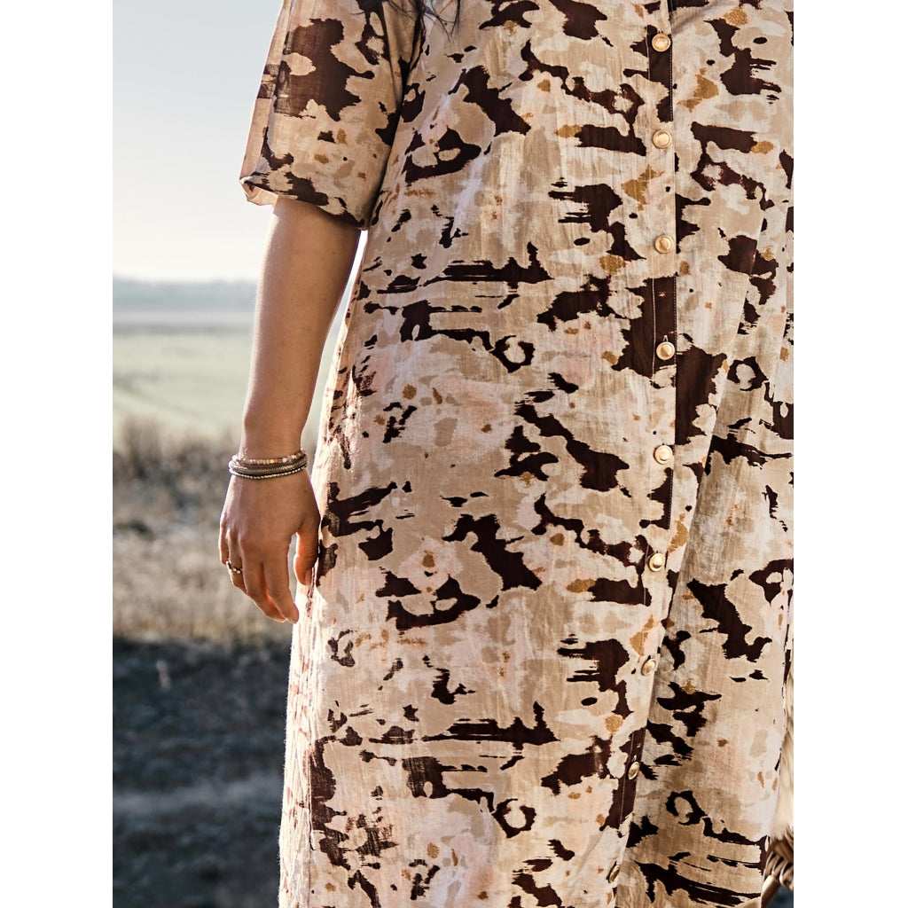 FIONA Dress er en enkel, men sofistikeret kjole, der kombinerer komfort med feminine detaljer. Den har en flatterende V-udskæring og ærmer i albuelængde, som giver et let og elegant look. Lommer i siden tilføjer en praktisk dimension.Kjolen falder flot og er ideel til hverdagen med sneakers eller til fest med smykker og hæle.- Plus size kjole i str. 38–56- V-udskæring og albuelange ærmer- Praktiske lommer i siden- Let materiale med flot fald- Velegnet til både hverdag og festlige lejligheder