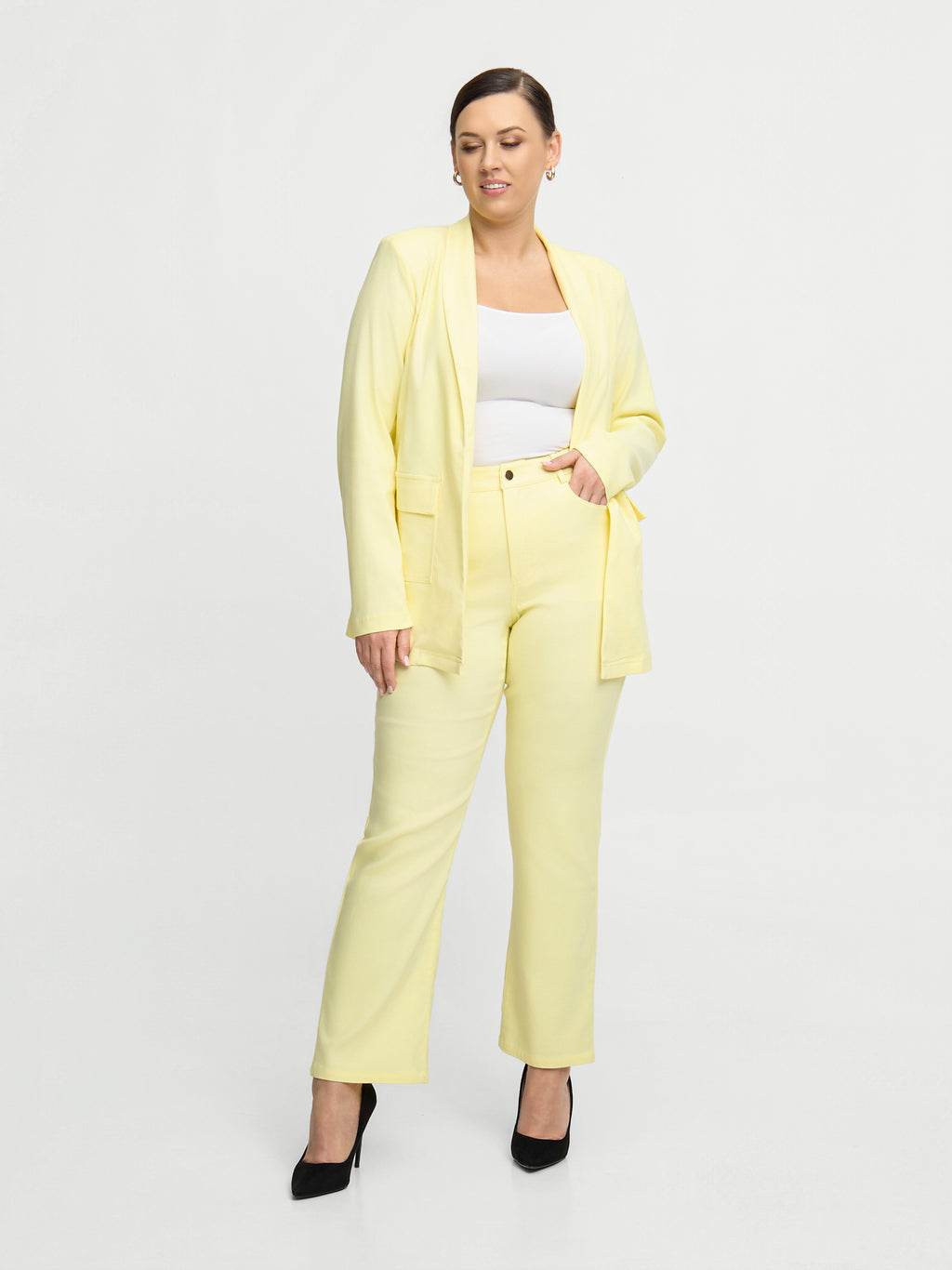 Joy Blazer er en stilfuld og feminin plus size blazer med et tidløst snit, designet til den moderne, kurvede kvinde. Det klassiske blazerdesign kombineres med en flatterende pasform, der giver et sofistikeret og velklædt udtryk.De praktiske frontlommer tilfører et afslappet touch, mens blazeren bevarer sit elegante look. Den falder smukt på kroppen og skaber en feminin silhuet, der både er komfortabel og stilren.Brug Joy Blazer over en bluse eller kjole for et elegant outfit – eller style den med jeans for et mere casual, men stadig polished udtryk. En alsidig plus size blazer, der fungerer perfekt til både hverdag og fest.Zoey er kendt for moderigtigt design til kurvede kvinder, hvor pasform og komfort går hånd i hånd – og Joy Blazer er ingen undtagelse.Highlights:• Plus size blazer med klassisk snit• Lommer foran• Flatterende pasform med flot fald• Komfortabel og anvendelig kvalitet• Tidløst og feminint design• Nem at style til både hverdag og fest